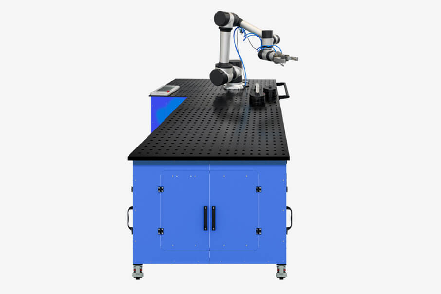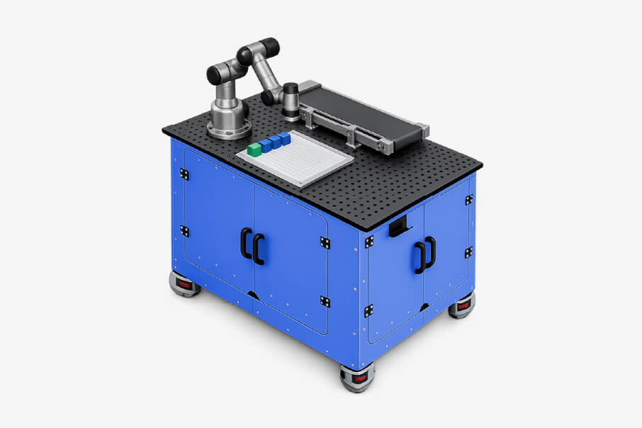 Роботизированная ячейка освоения базовых навыков программирования промышленных манипуляторов. Включает всё необходимое для отработки сложных пространственных траекторий — от простых перемещений до имитации технологических операций.